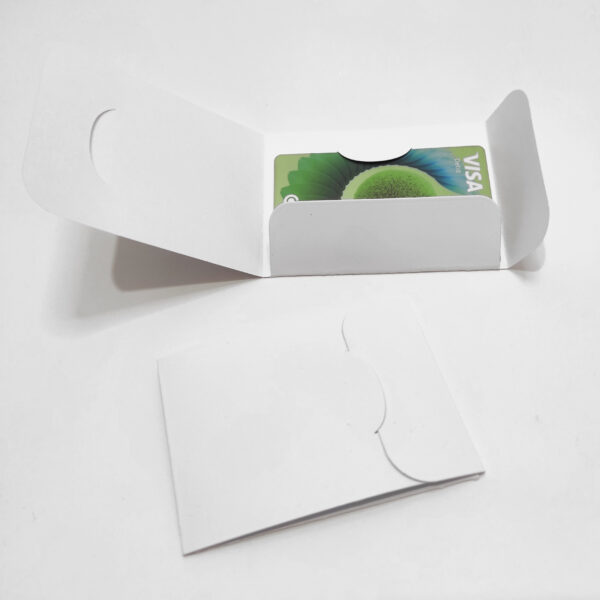 Önzáródó ajándékutalvány papír tartó tok / boríték – amely alkalmas bankkártya méretű ajándékkártyák átadására vagy akár egy képeslapra vagy könyvbe beragasztva tároló tokként is használható. Pénzátadó is készülhet belőle vagy akár meglepetés kuponok is kerülhetnek bele.